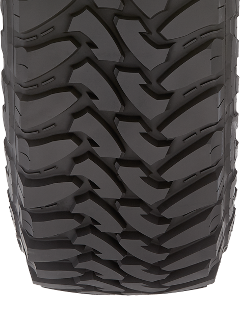 AGGRESSIVE TREAD DESIGN WITH HOOK-SHAPED BLOCKS