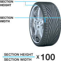 The aspect ratio is the dimensional relationship of the section height to the section width. The lower the aspect ratio, the shorter the sidewall and the wider the shoulder-to-shoulder width.